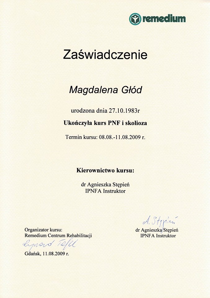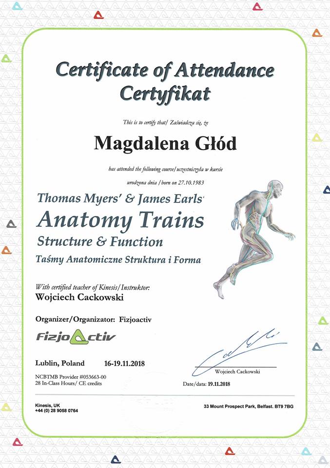 Jestem magistrem fizjoterapii, absolwentką Akademii Wychowania Fizycznego we Wrocławiu.