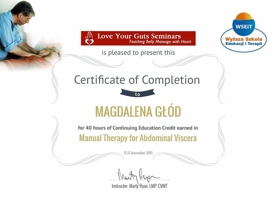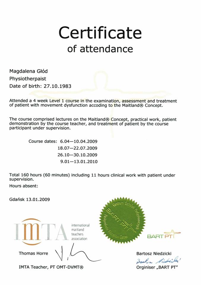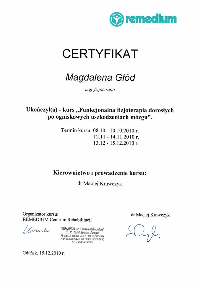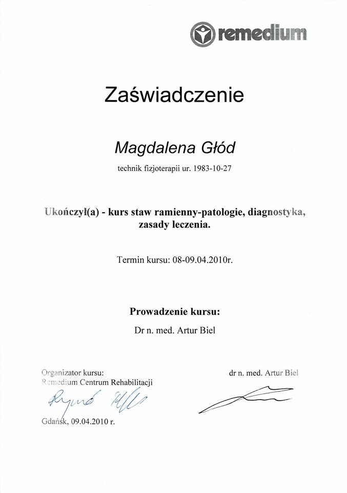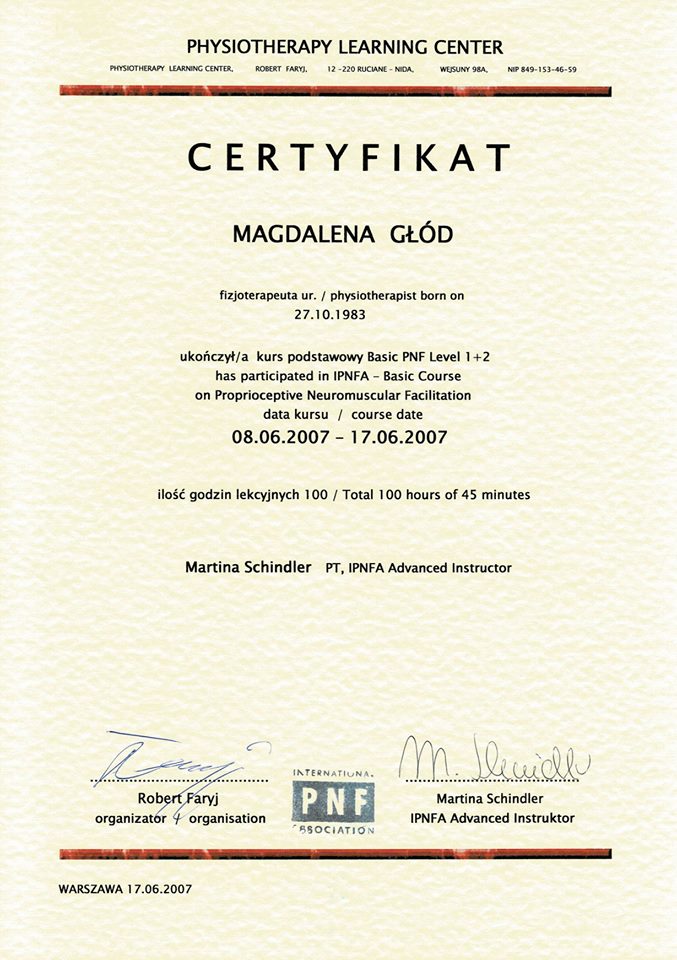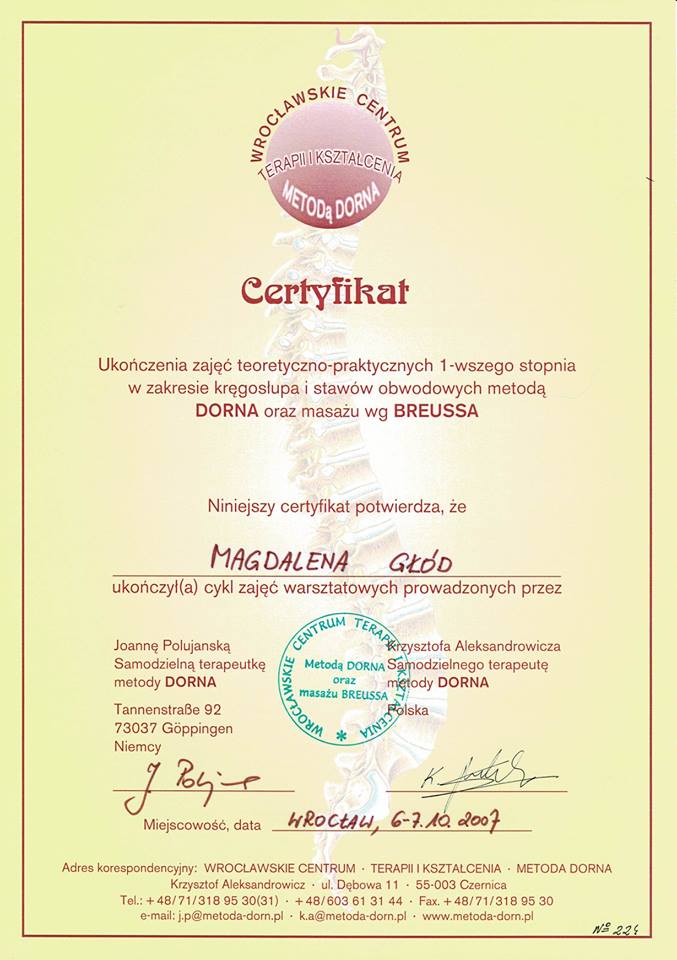 Chcąc doskonalić warsztat terapeutyczny i móc spełniać oczekiwania pacjentów cały czas poszerzam swoją wiedzę biorąc udział w intensywnych kursach i szkoleniach zawodowych.