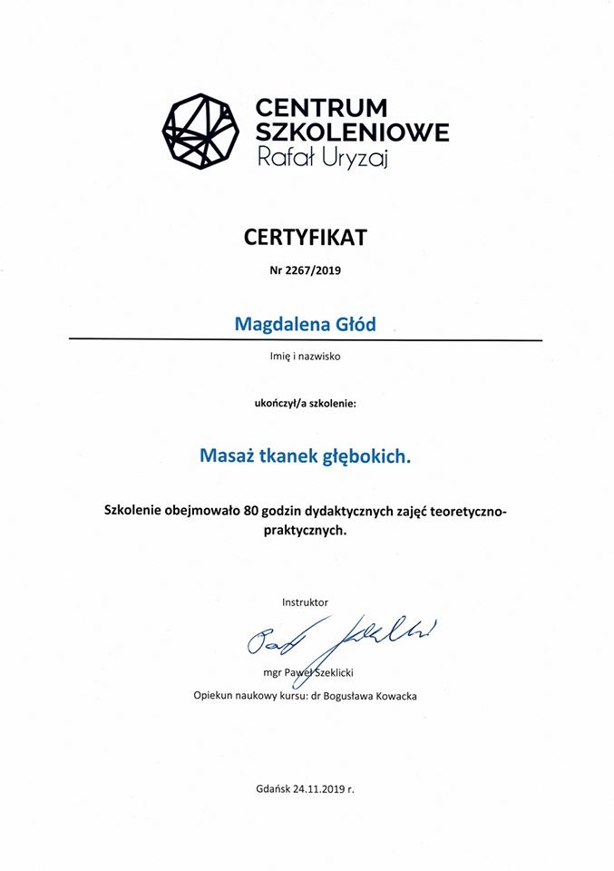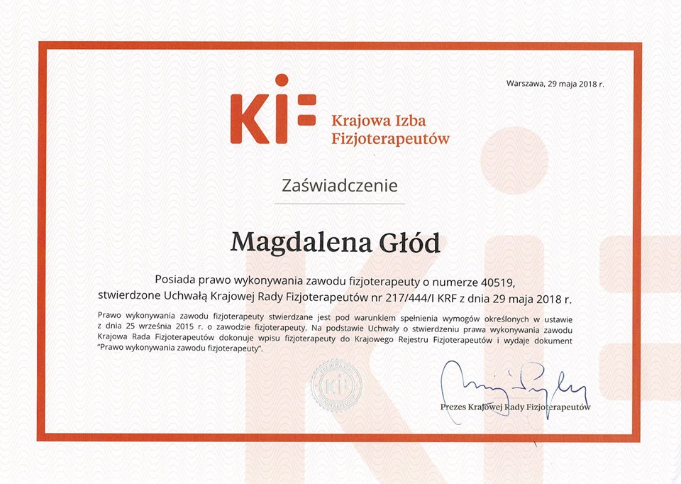 Jestem magistrem fizjoterapii, absolwentką GUMed. Praca nad drugim człowiekiem to moja pasja.